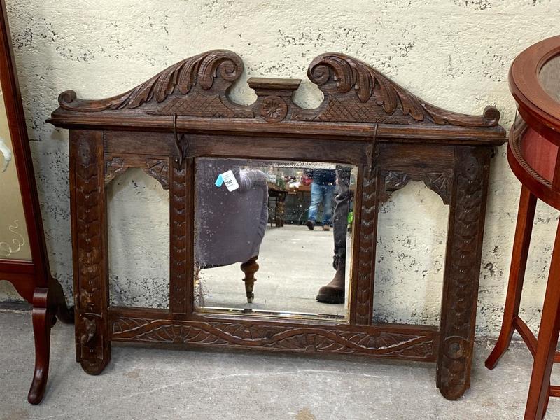 Lot 390 - CARVED OAK HALL MIRROR WITH COAT HOOKS CARVED OAK HALL MIRR £25
