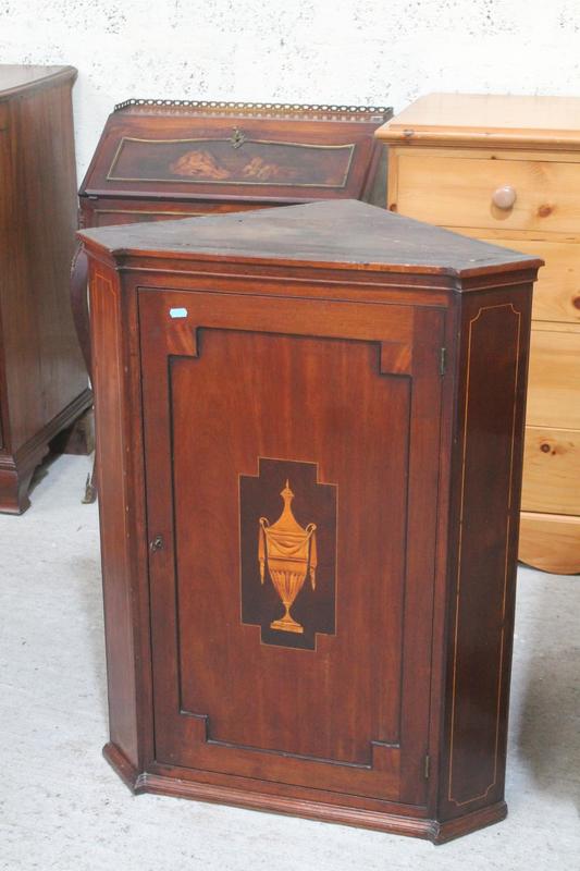 Lot 358 - INLAID MAHOGANY CORNER CUPBOARD £35