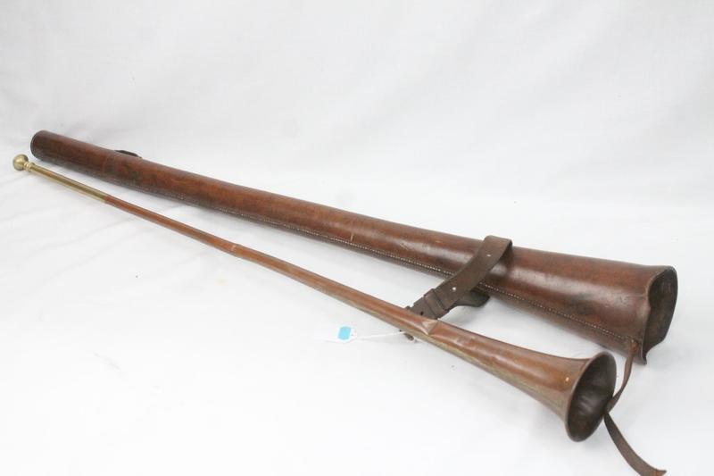 Lot 16 - LEATHER CASED HUNTING HORN - BOOSEY CO £75