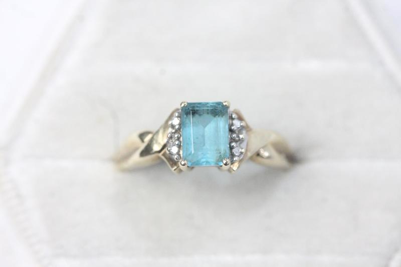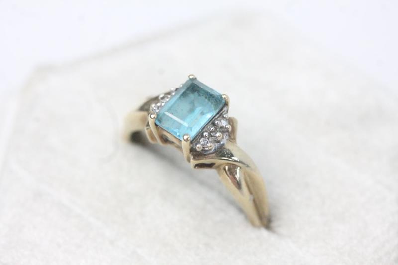 Lot 132 - 9CT GOLD BLUE & WHITE STONE RING £65