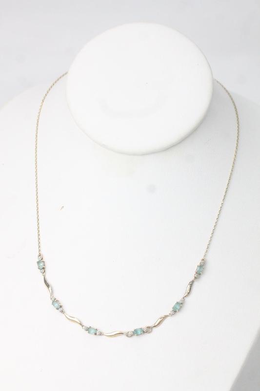 Lot 122 - 9CT GOLD BLUE&WHITE STONE NECKLACE £70