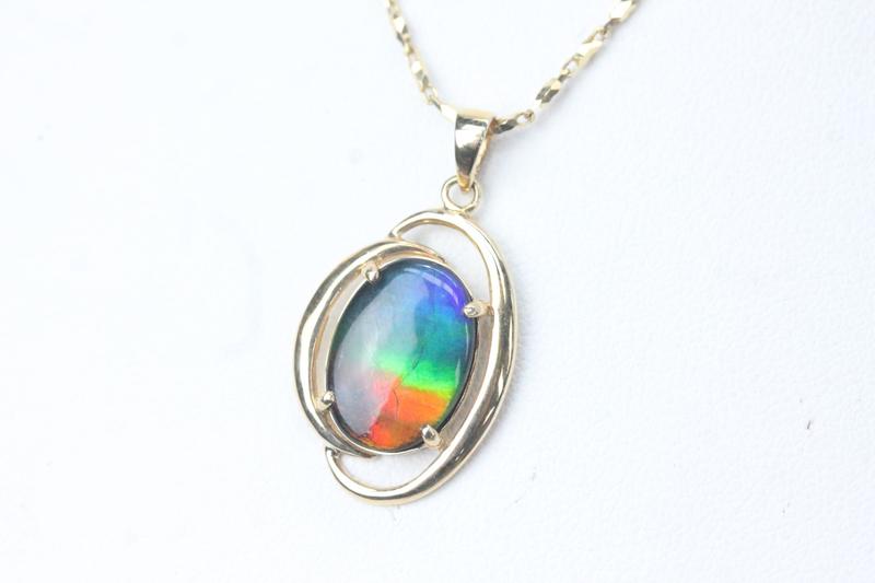 Lot 140 - 14CT GOLD AMMOILTE PENDANT & CHAIN £85