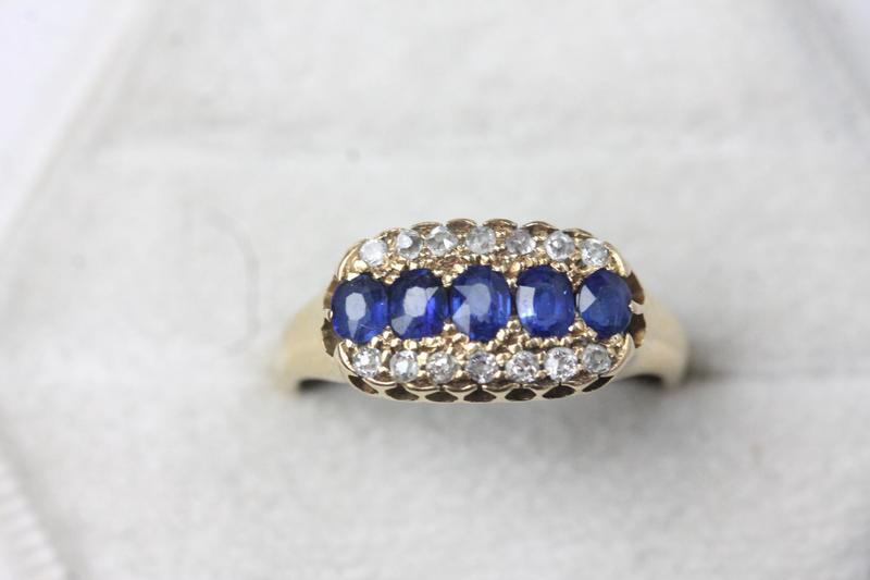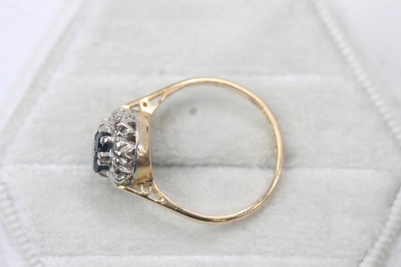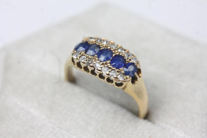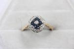 Lot 114 - 18CT GOLD DIAMOND & SAPPHIRE RING £120