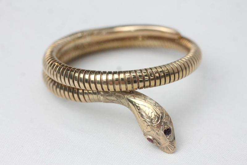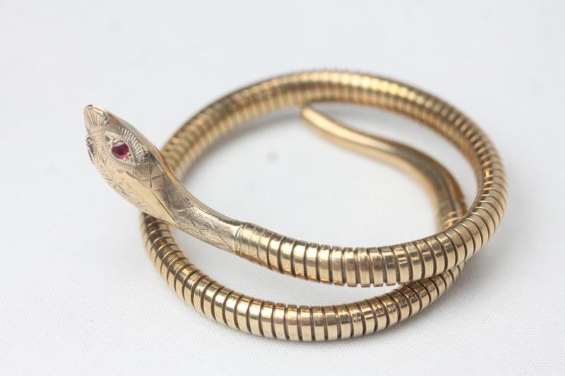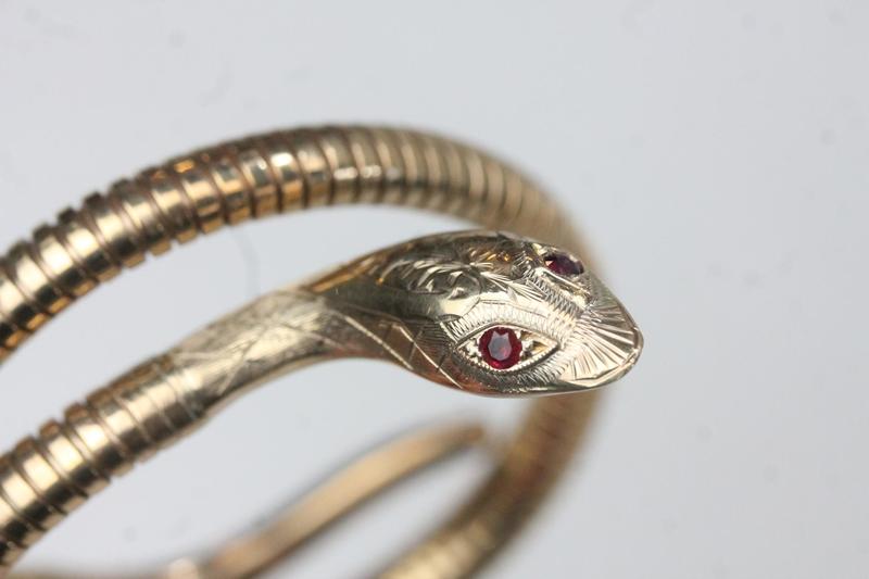 Lot 127 - 9CT GOLD SNAKE BANGLE W RUBY EYES £700