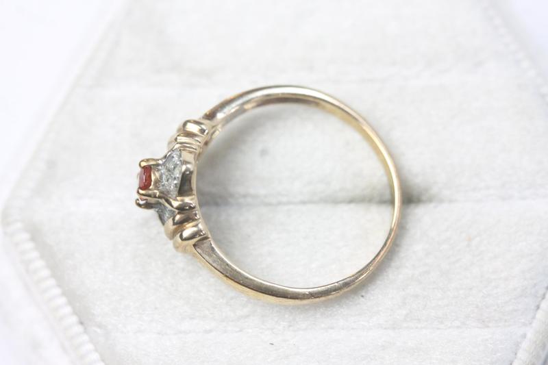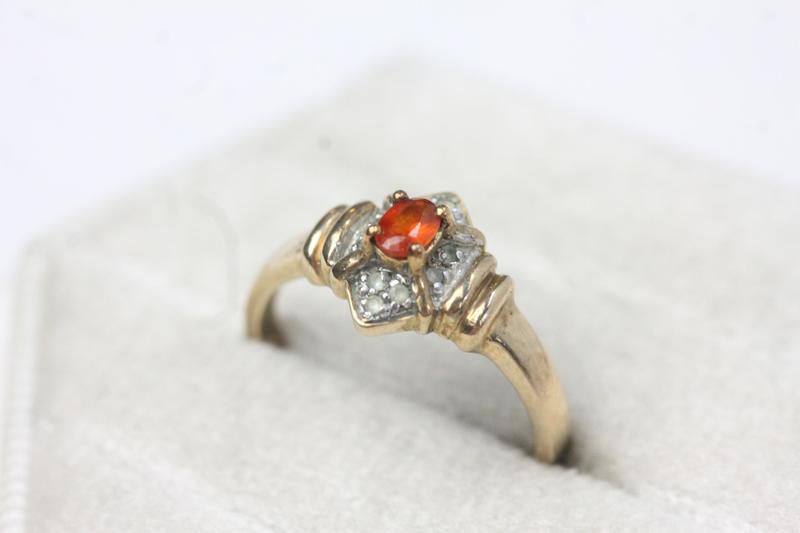 Lot 125 - 9CT GOLD ORANGE & WHITE STONE RING £130