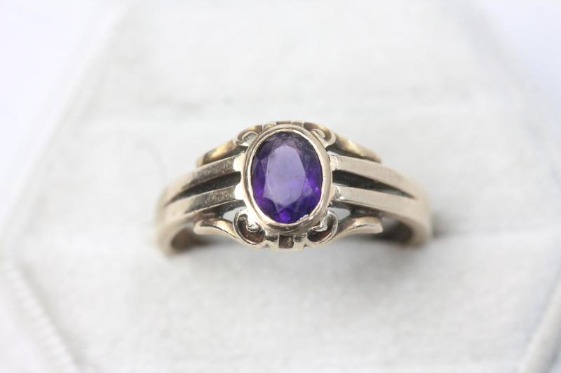 Lot 121 - 9CT GOLD AMETHYST RING £150