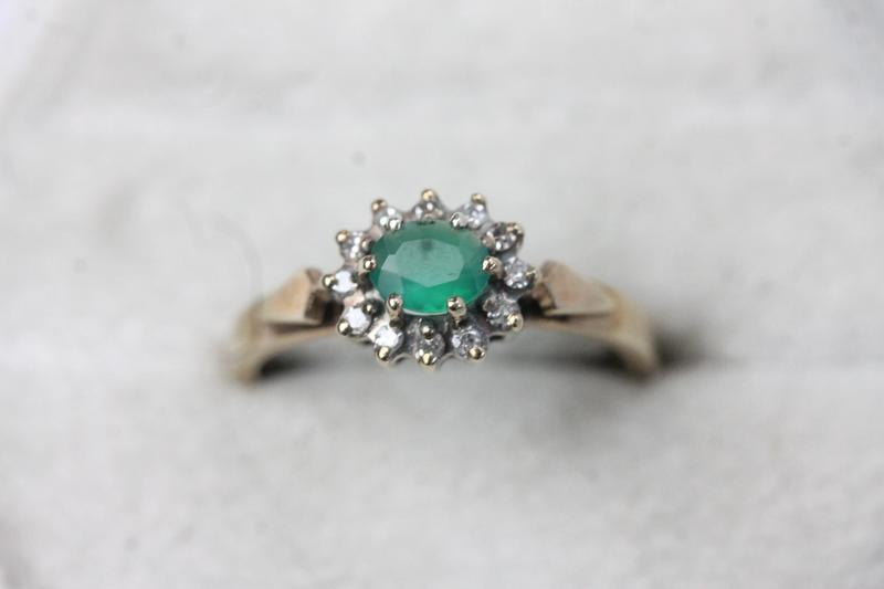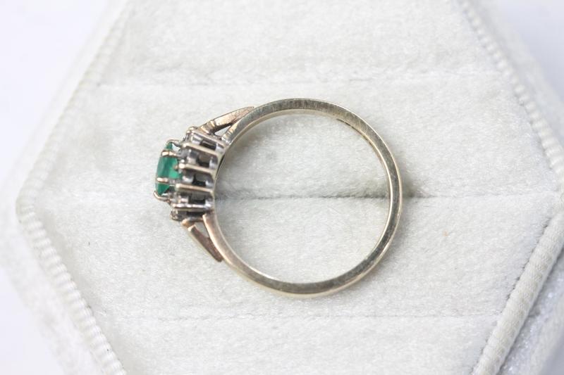 Lot 124 - 9CT GOLD GREEN & WHITE STONE RING £120