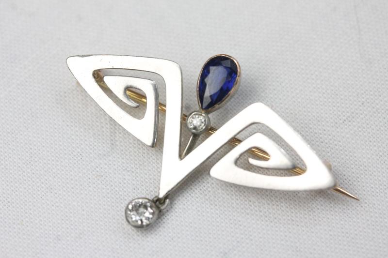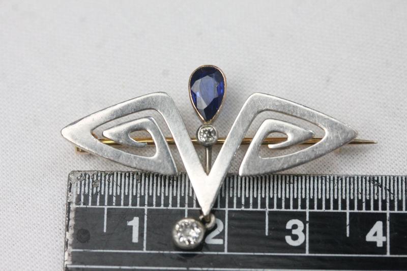 Lot 126 - 14CT GOLD & PLATINUM DIA. & SAPP. BROOCH £200