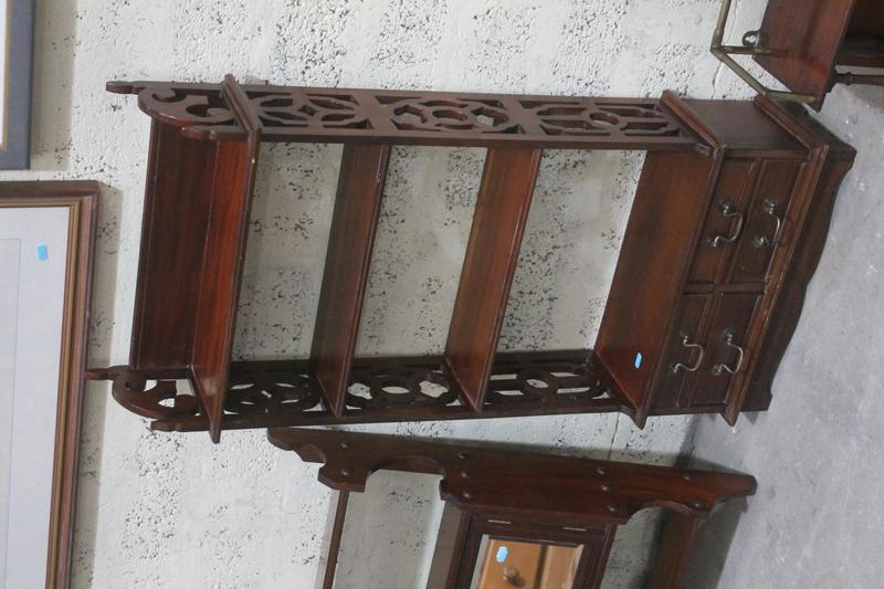 Lot 328 - MAHOGANY HANGING SHELF - BRASS GALLERY £55