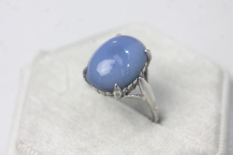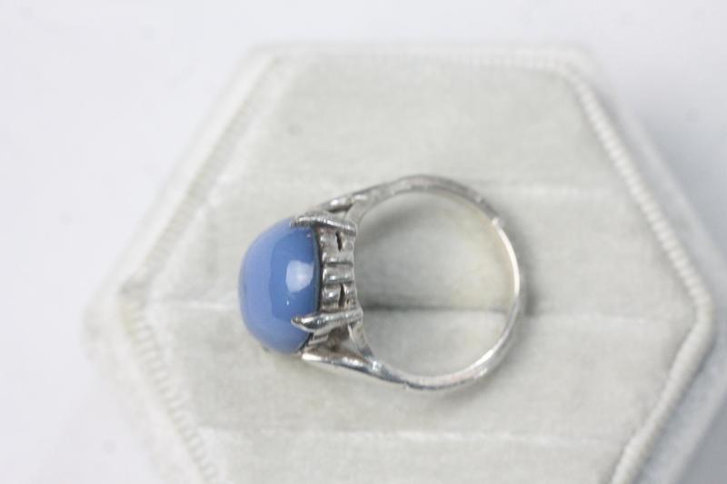 Lot 138 - SILVER & BLUE CABOCHON RING £38
