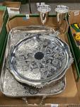 Lot 49 - SILVER PLATED TRAY, GOBLETS & SALVER SILVER PLATED TRAY, £40