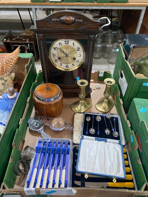 Lot 78 - CUTLERY SETS, CANDLESTICKS, TEA STRAINER CUTLERY SETS, CANDLE £20