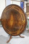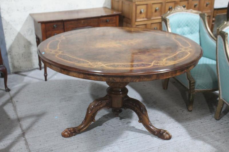 Lot 471 - INLAID WALNUT CENTRE TABLE - CARVED BASE £300