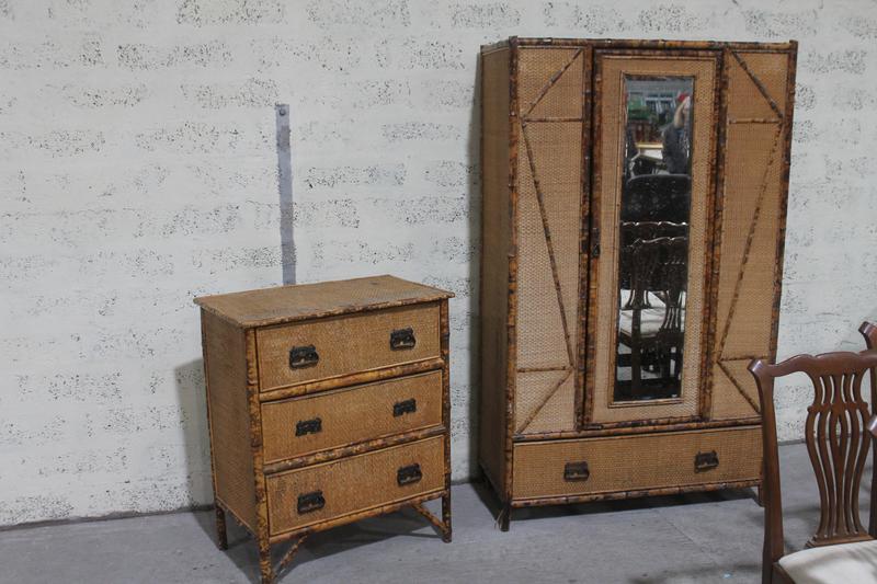 Lot 483 - BAMBOO/CANE WARDROBE & 3 DWR CHEST £90