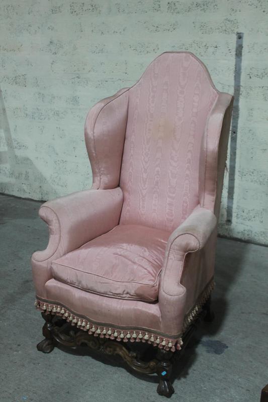 Lot 503 - WALNUT FRAMED WING ARMCHAIR £500