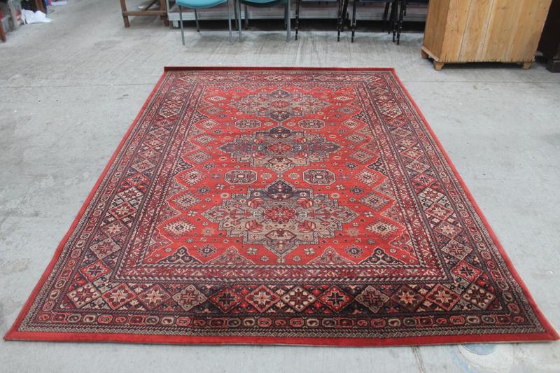 Lot 485 - RUST/OLIVE/BROWN/BLACK PATTERNED RUG £80