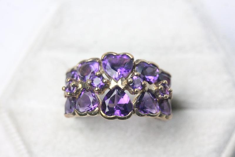Lot 152 - 9CT GOLD, AMETHYST 'HEART' RING NOT SOLD - RESERVE £175