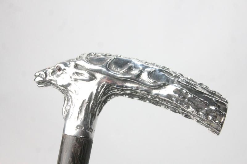 Lot 7 - SILVER & EBONY WALKING CANE - STAG HANDL NOT SOLD - RESERVE £100
