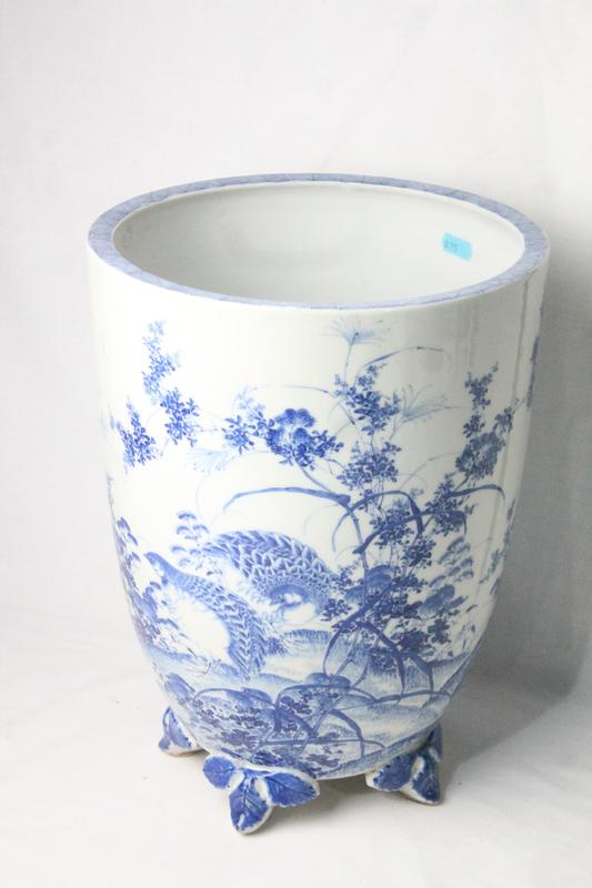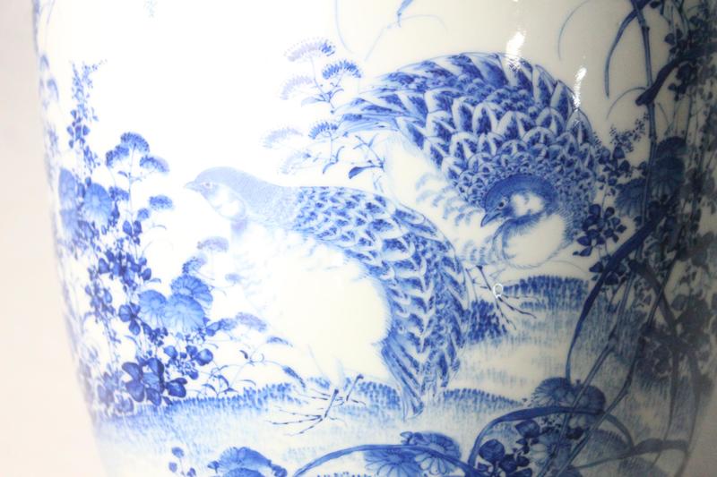Lot 8 - LARGE BLUE/WHITE VASE - ORIENTAL BIRDS NOT SOLD - RESERVE £80