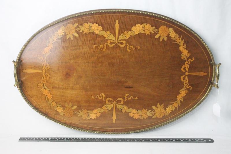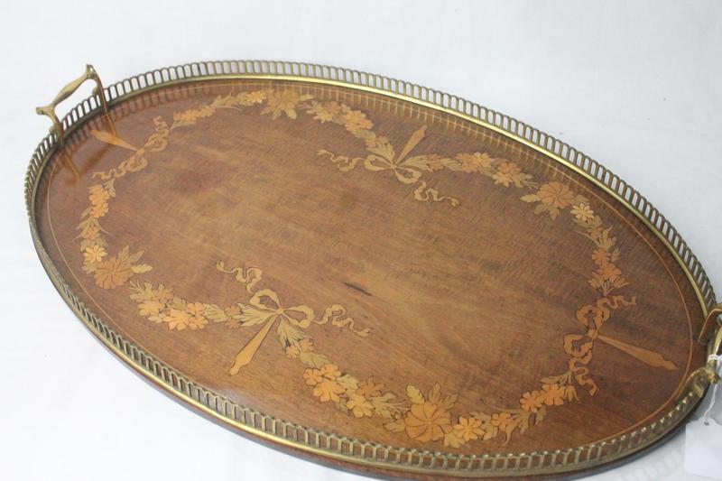 Lot 27 - INLAID MAHOGANY & BRASS GALLERY TRAY £55