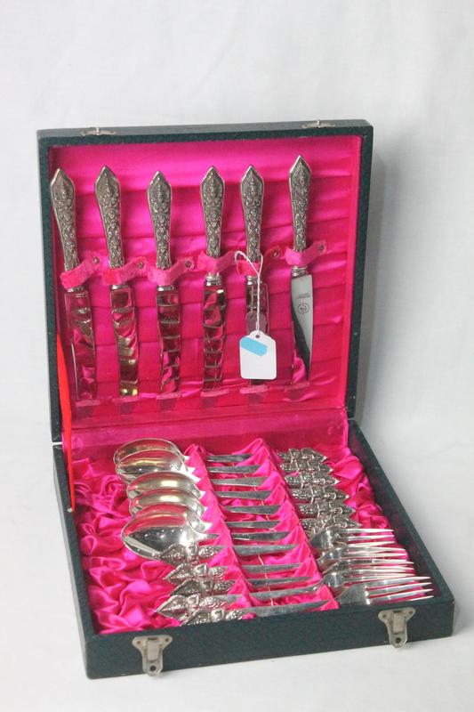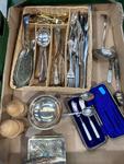 Lot 82 - CUTLERY, METAL BOX, WOODEN EGGS ETC CUTLERY, METAL BOX, £22