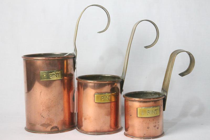 Lot 28 - COPPER & BRASS MEASURES - HALF, 1 & 2 PT £30