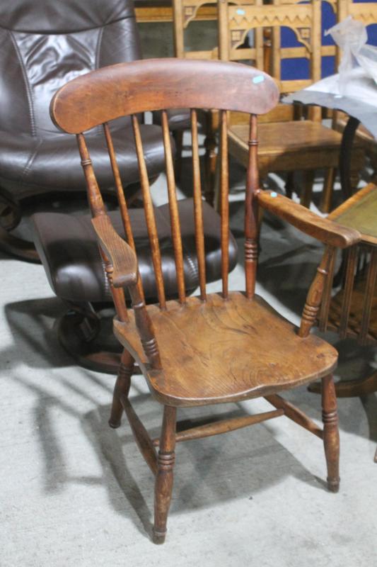 Lot 455 - ELM SEAT OPEN ARM CHAIR £65