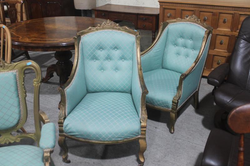 Lot 470 - PR CONTINENTAL PAINTED FRAME ARMCHAIRS £140
