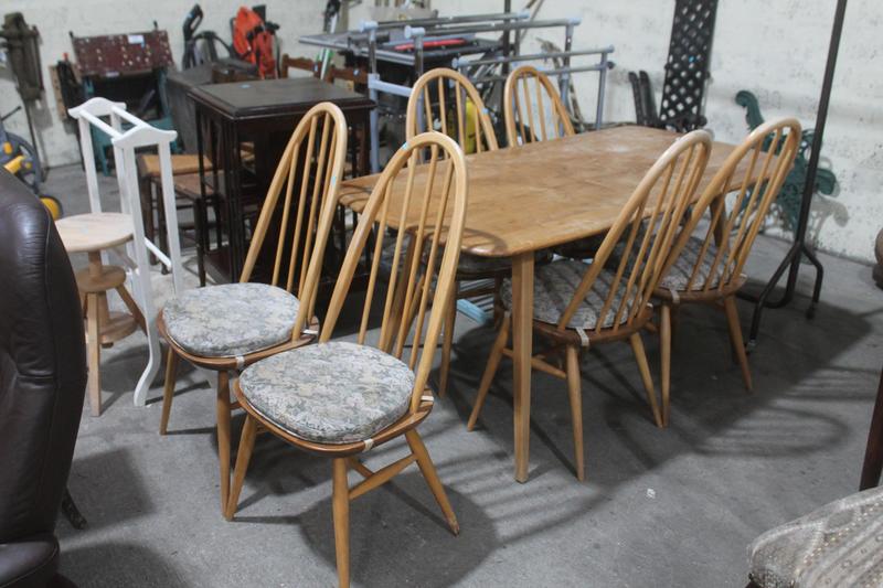 Lot 512 - ERCOL RECTANGLE KITCHEN TABLE & 6 WINDSO £370