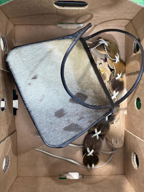 Lot 49 - VINTAGE SEAL SKIN HANDBAG, GLOVES & BELT VINTAGE SEAL SKIN HA £30