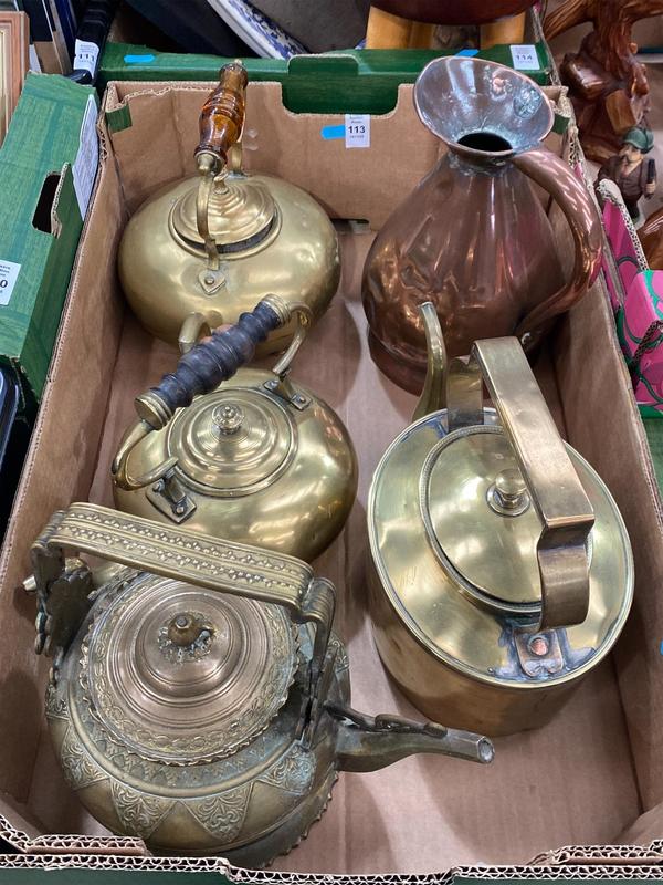 Lot 113 - BRASS KETTLES & COPPER MEASURE BRASS KETTLES & COPP £45