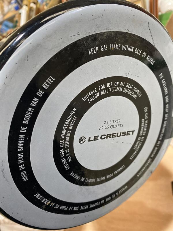 Lot 368 - LE CREUSET KETTLE - BLACK & DECANTERS LE CREUSET KETTLE - £32