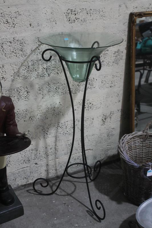 Lot 17 - OIL LAMP - IRON BASE & GREEN GLASS BOWL