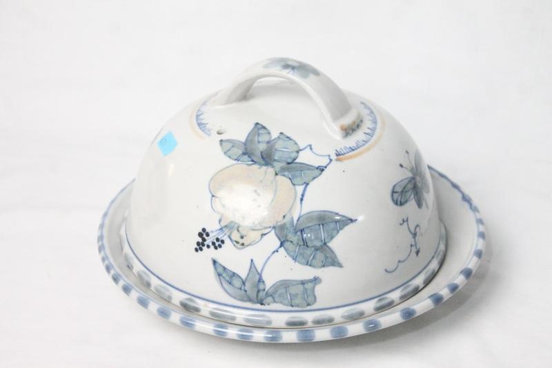 Lot 7 - HIGHLAND STONEWARE 'FUSHIA/BUTTERFLY' CHEESE DOME