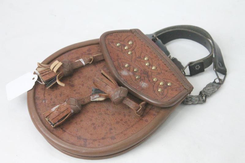 Lot 15 - BROWN LEATHER SPORRAN & BELT