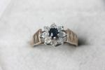 Lot 163 - 9CT GOLD, BLUE & WHITE STONE RING (SIZE N-O)