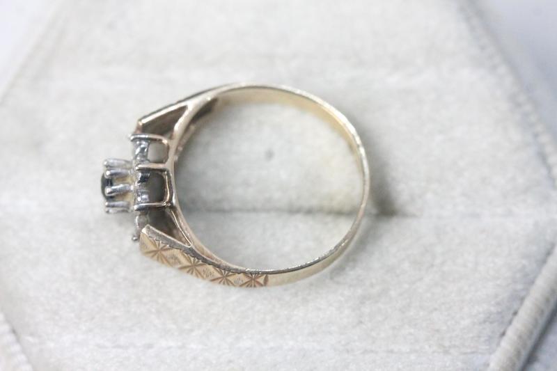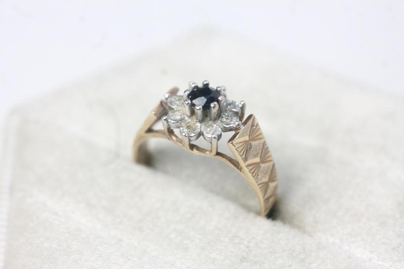 Lot 160 - 9CT GOLD, BLUE & WHITE STONE RING (SIZE I)