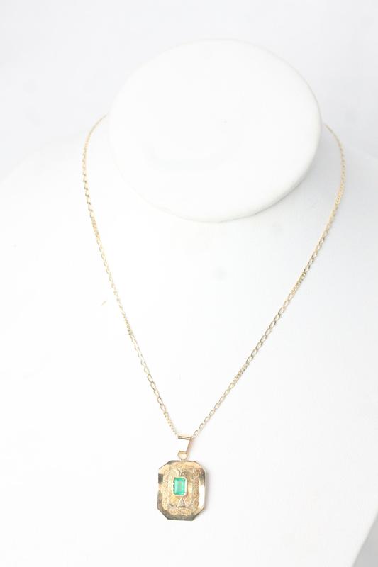 Lot 207 - 18CT GOLD, EMERALD PENDANT & CHAIN