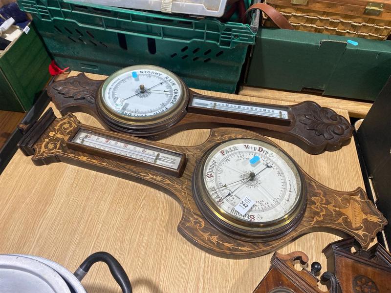 Lot 342 - 2X WOODEN ANEROID BAROMETERS