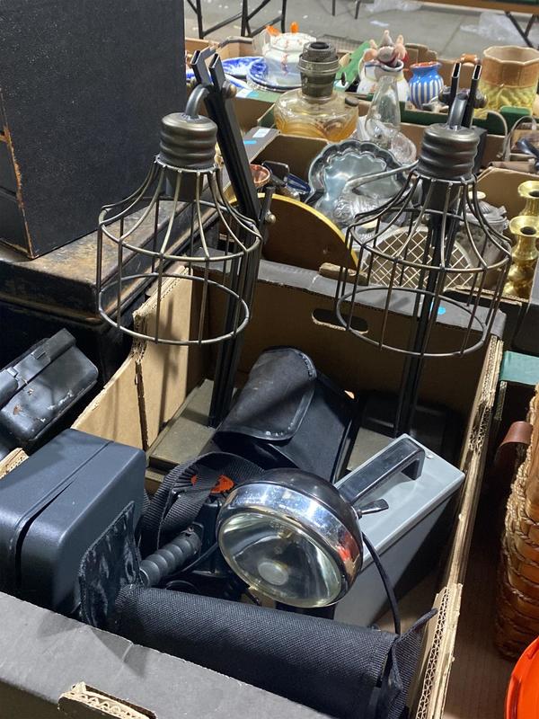 Lot 338 - METALWARES, BINOS, CAMERAS,OIL LAMPS ETC