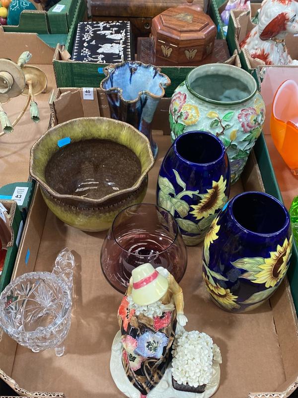 Lot 10 - UIG POTTERY 'CLEMATIS' VASE & SHALLOW BOWL / TRAY