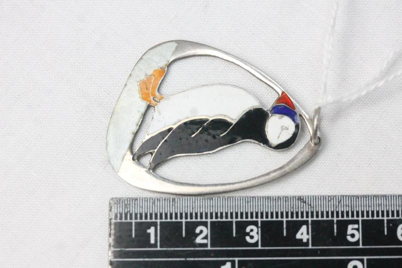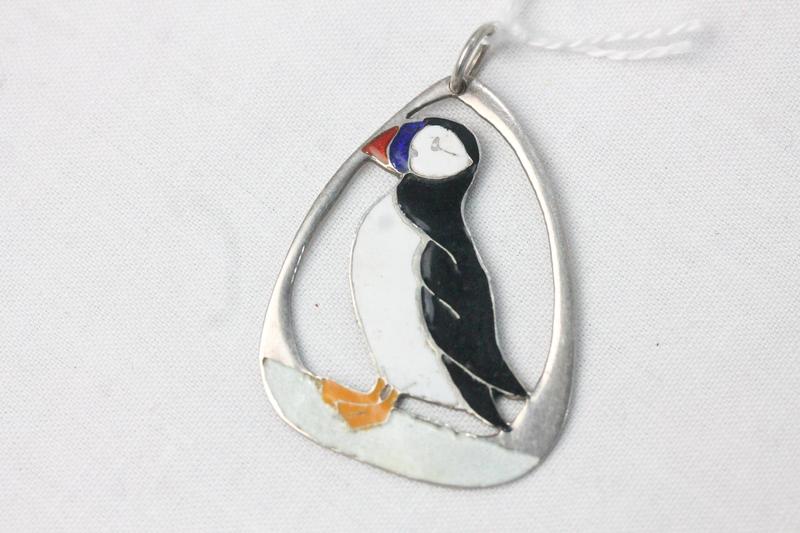 Lot 131 - SILVER & ENAMEL 'PUFFIN' PENDANT £48