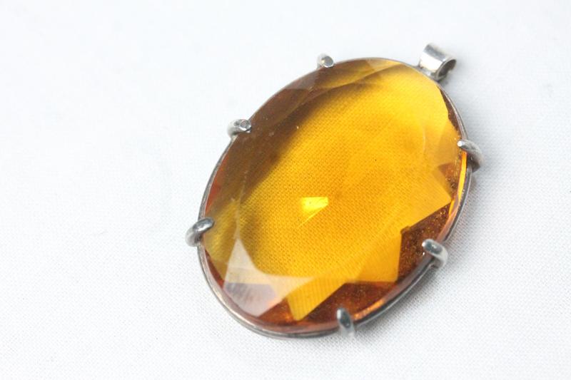 Lot 130 - LARGE SILVER MOUNTED ORANGE STONE PENDAN £25