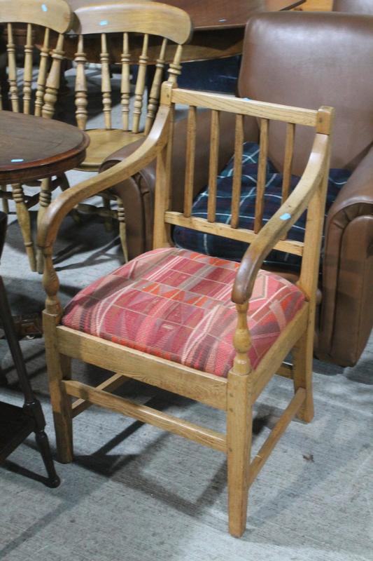 Lot 395 - LIGHT OAK OPEN ARMCHAIR £35