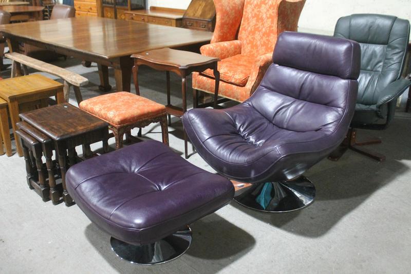 Lot 369 - AUBERGINE LEATHER SWIVEL CHAIR & STOOL £190