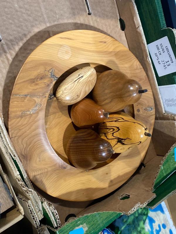 Lot 28 - TURNED WOODEN FRUITS & BOWL TURNED WOODEN FRUITS £60