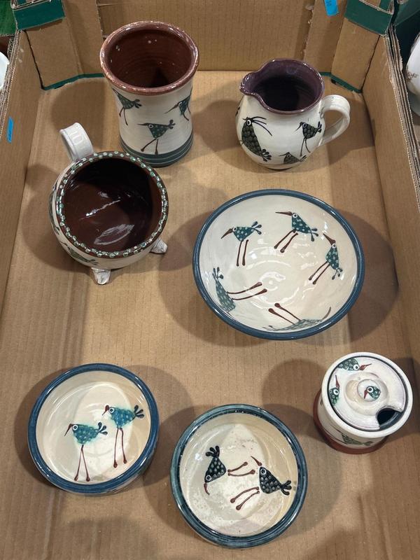 Lot 24 - CROMARTY POTTERY 'BIRDS' JUG, BOWLS ETC £45