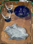 Lot 68 - BLUE RIMMED GLASS BOWLS & PLATES, PUNCHB £22
