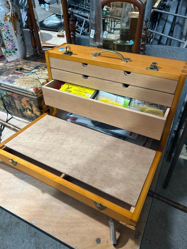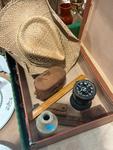 Lot 37 - SM.CASE WITH BINOCULARS, HAT, RULERS ETC SM.CASE WITH BINOCUL £30