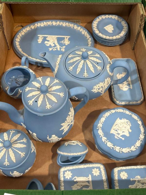 Lot 55 - WEDGWOOD BLUE JASPER INC.TEA/COFFEE POTS £40